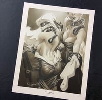 This is a reproduction print of an illustration I originally drew with ink and marker on bristol board. I then used a high-resolution scan to create 11" x 14" giclee prints using archival inks on 100% cotton archival art paper, signed by me. This item will be shipped in a crystal clear plastic sleeve between two thick pieces of foam, inside a new cardboard box. To hold this item on file for shipping at a later date, please enter discount code HOLD at checkout.