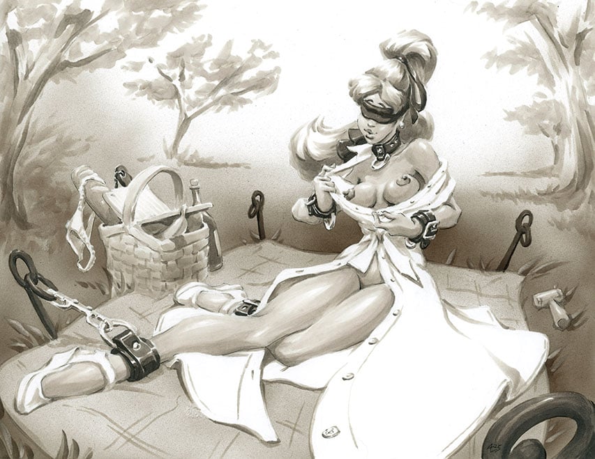 Original hand-drawn lifestyle art! "Andy's Dames" have been decorating private bedrooms, dungeons, and play spaces around the world since 2009.